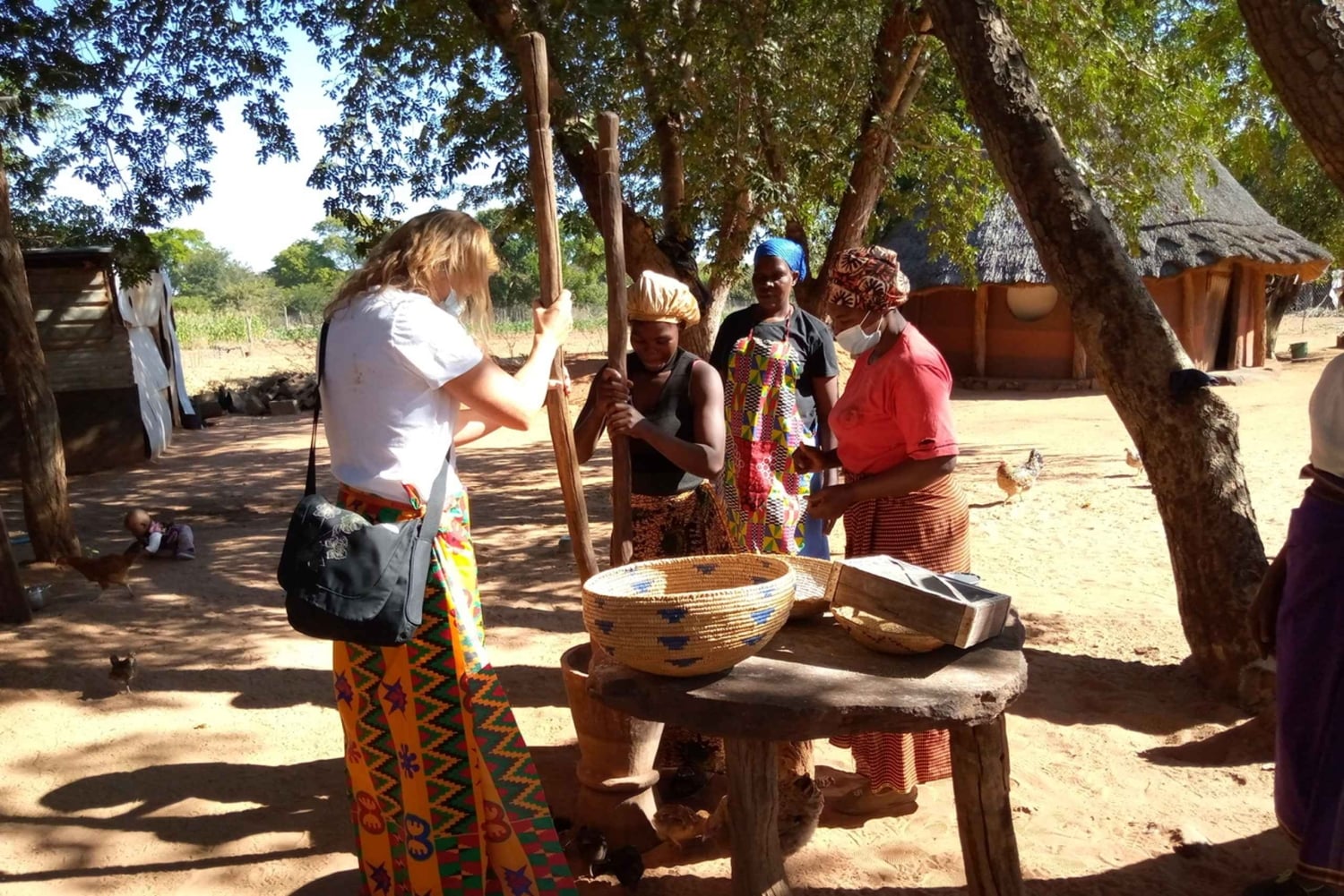 - Sal de tu hotel en las cataratas Victoria a las 9:00 y conduce unos 20 minutos hasta llegar a Monde Village (el tiempo es flexible).