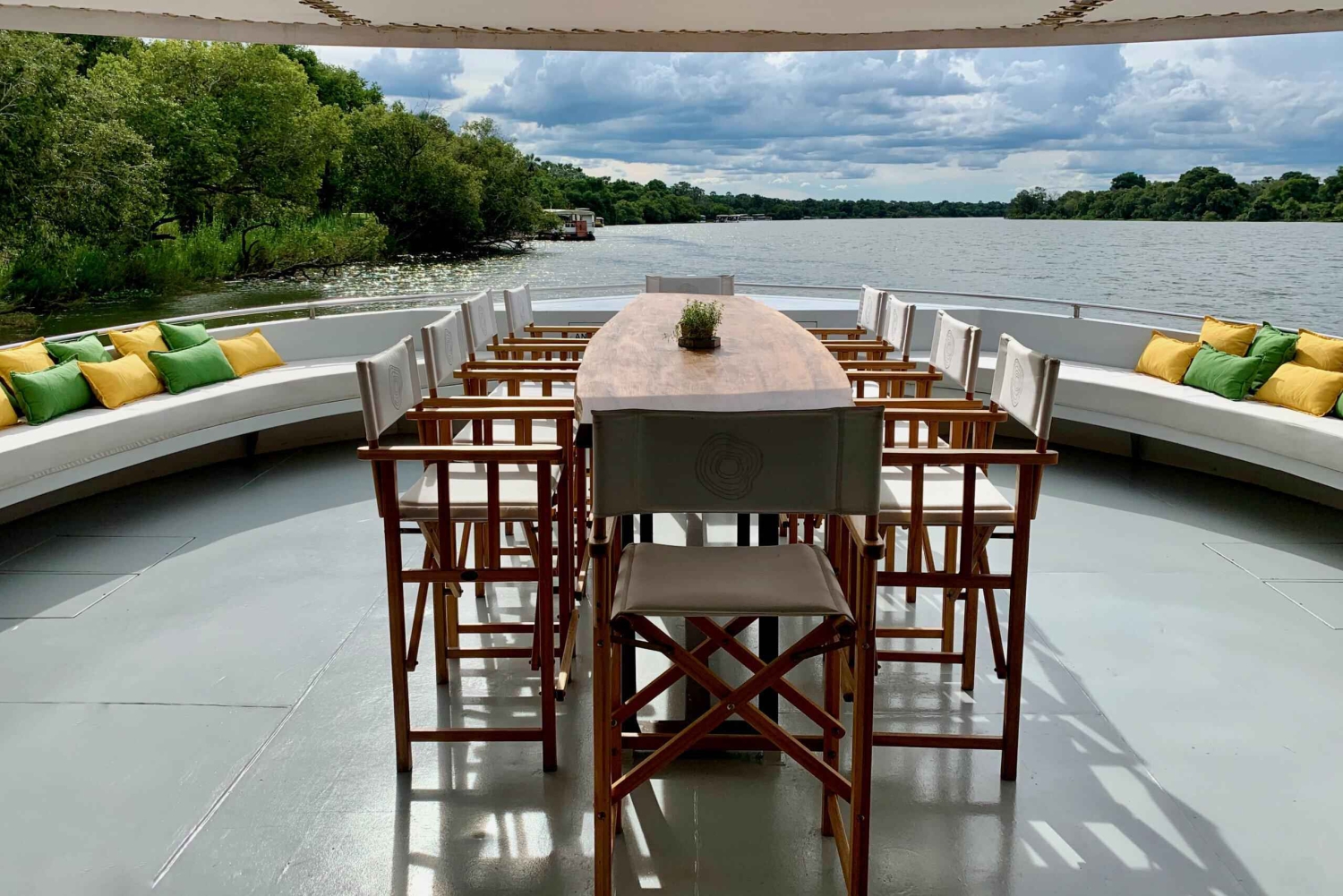 - Nauti välipaloja ja juomia, jotka tarjoillaan laivalla, kun risteilet Sambesi-jokea pitkin.