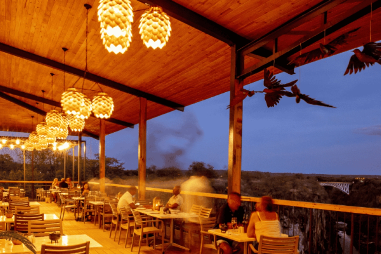 壮大なバトカ峡谷の端にドラマチックに位置するルックアウトカフェは、ビクトリアの滝で最も愛されているダイニングスポットの一つです。このオープンエアカフェからは、峡谷と雄大なザンベジ川の息をのむようなパノラマの景色をご覧いただけます。象徴的なヴィクトリア・フォールズ・ブリッジと滝から立ち上る霧が、忘れられない背景を作り出しています。 ビクトリアフォール レインフォレストの入口とワイルドホライズンのハイワイヤーアドベンチャーアクティビティの近くに位置するカフェでは、スリルを求める人々が峡谷のスイング、ジップライン、フライングフォックスに挑戦する様子を最前列からご覧いただけます。 ルックアウトカフェは、ボリュームたっぷりの料理、シェア用の盛り合わせ、おいしいスナックなど、高評価のメニューで有名です。冷たいビール、手作りカクテル、または上質なワインと一緒にお食事をお楽しみいただき、アフリカで最も美しい景色をご堪能ください。食事、景色、雰囲気を楽しむには必見の場所です。Includes