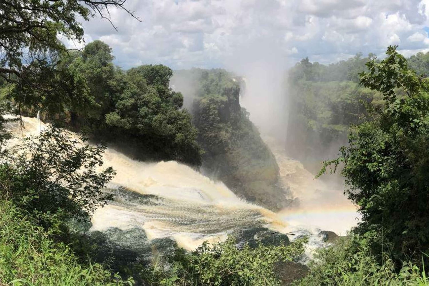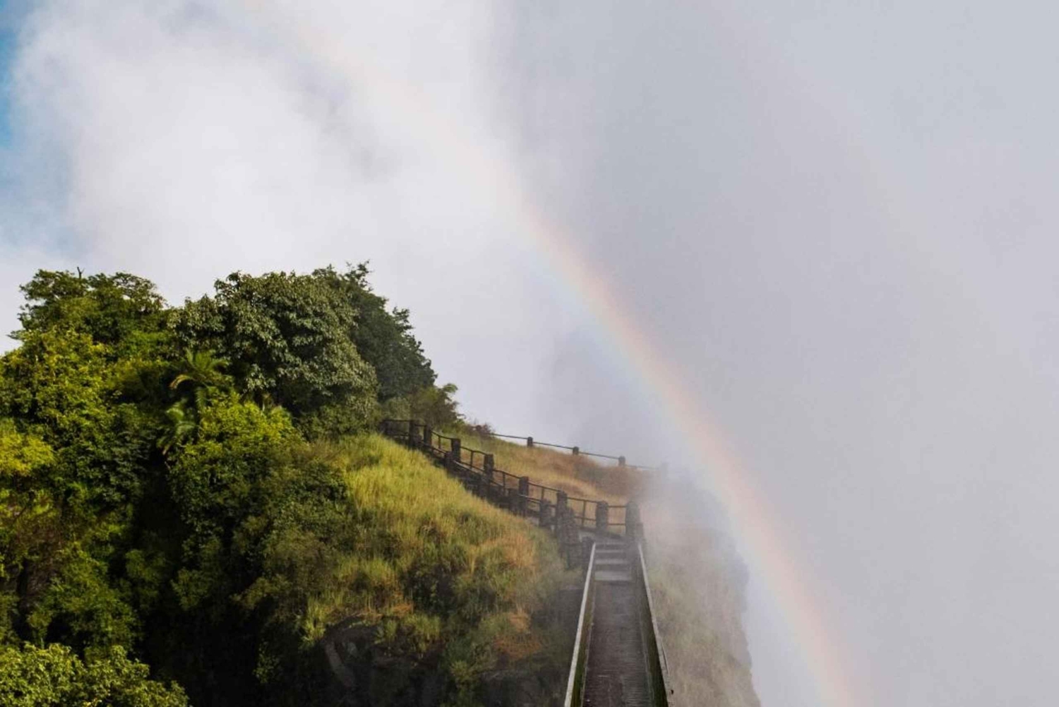 Start eventyret med en praktisk henting kl. 07.00 fra Kasane, etterfulgt av smidig og problemfri grenseovergang til Zimbabwe og Zambia. Omvisningen i Victoria Falls starter med en spasertur langs de frodige regnskogstiene, hvor tåken fra det fossende vannet fyller luften og bruset fra fossen skaper en uforglemmelig atmosfære. Besøk en rekke ikoniske utsiktspunkter, som alle tilbyr et unikt perspektiv på dette naturlige vidunderet. Bli overveldet av den dramatiske sveipen av Main Falls, kjenn kraften i vannet ved Devil's Cataract og beundre den smale kløften fra Knife-Edge Bridge – alle perfekte steder for fantastiske bilder og varige minner. Underveis deler ekspertguiden din fascinerende innsikt i historien, geologien og den kulturelle betydningen av Victoria Falls. Lær om dannelsen av fossefallet, legendene til lokalsamfunnene og den mangfoldige floraen og faunaen som trives i dette unike regnskogsmiljøet. Denne turen gir deg sjansen til å utforske Victoria Falls fra både Zimbabwe- og Zambia-siden, og tilbyr ulike vinkler, fantastisk natur og en virkelig oppslukende opplevelse. Den er perfekt for reisende som søker eventyr, utrolige fotomuligheter og en dypere forståelse av et av verdens mest spektakulære naturlige underverk.Includes