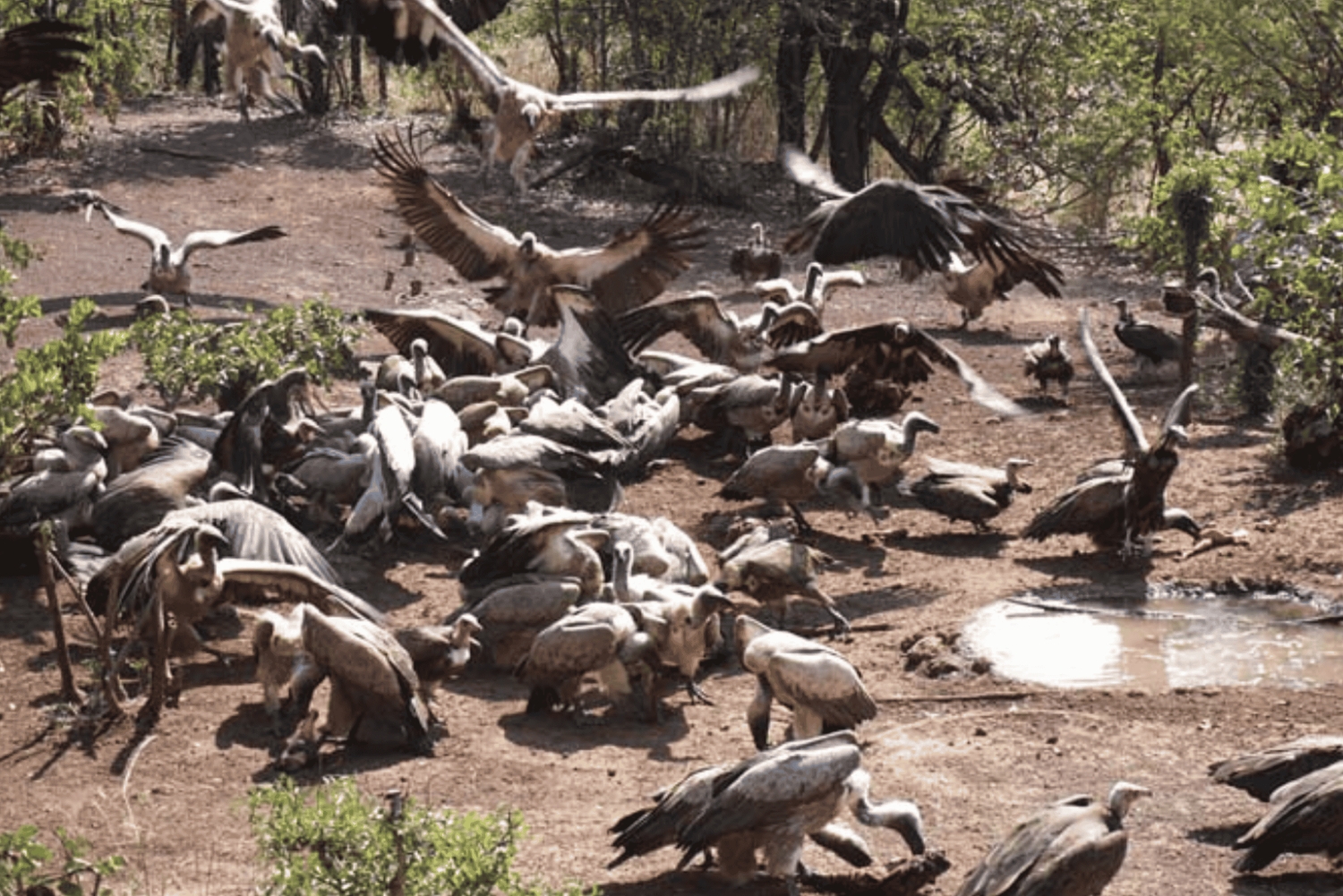 - Se at gribben mater og observer ville dyr ved et vannhull i bushen
