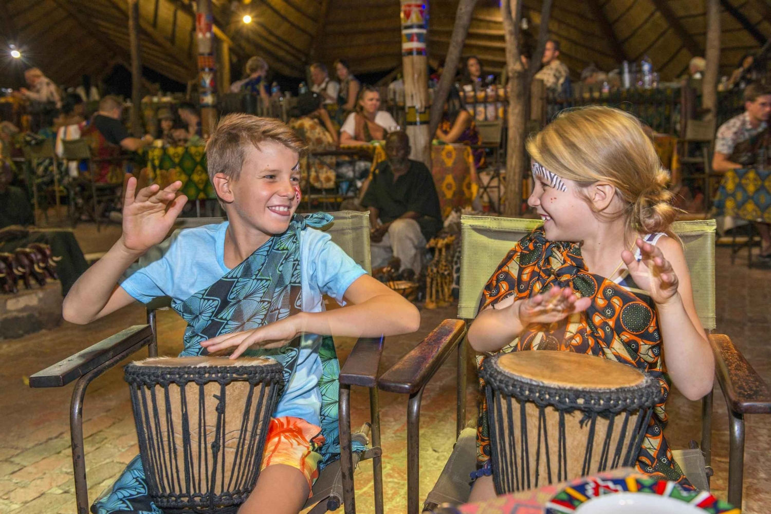 Lunch serwowany jest w kawiarni widokowej, położonej na skraju wąwozu Batoka, z widokiem na wąwóz i most Victoria Falls. Wieczorem kolacja zostanie podana w Boma w Safari Lodge. Atrakcja obejmuje pokaz bębnów i degustację różnych afrykańskich potraw. Dzień 3