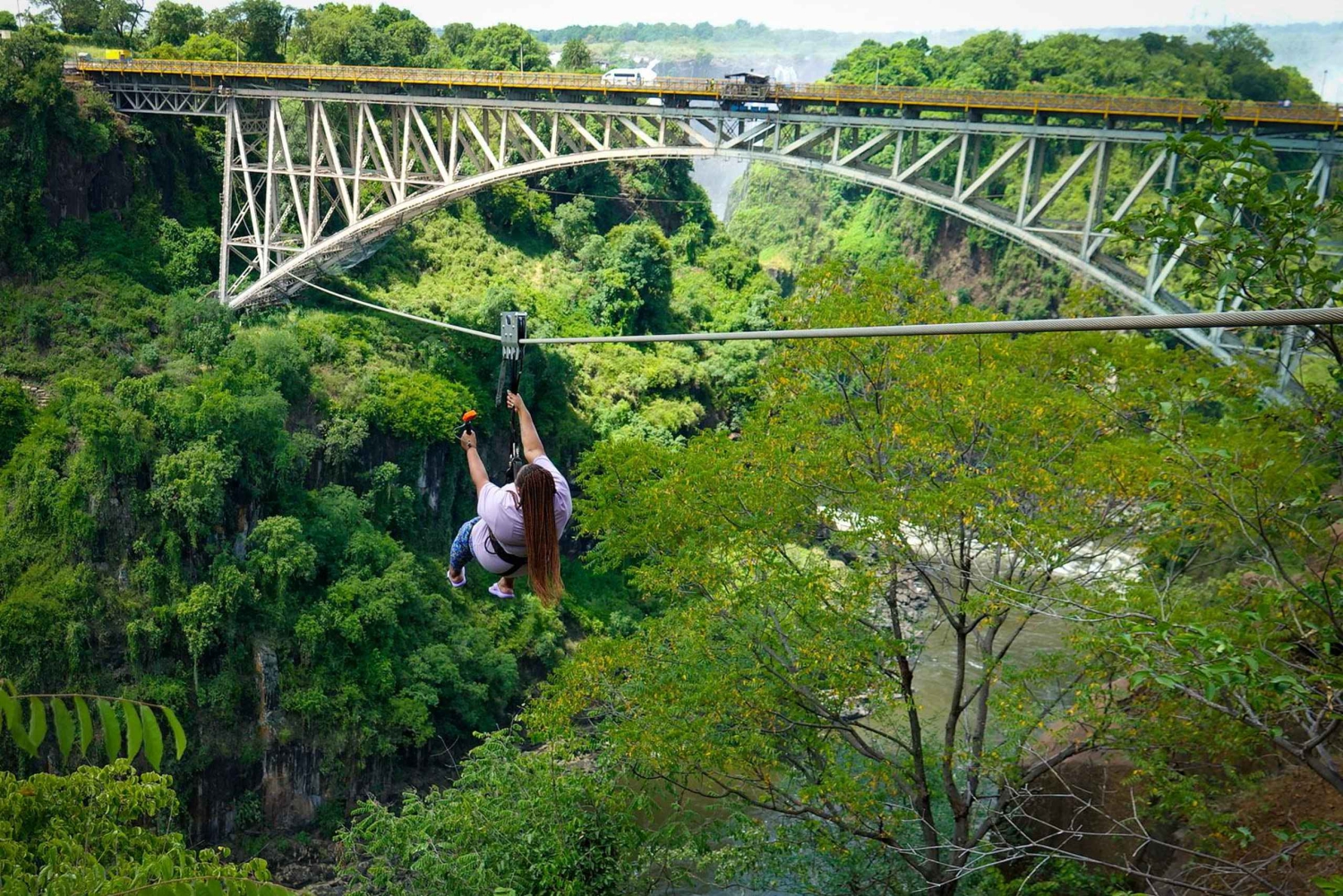 Skok na bungee: Wykonaj zapierający dech w piersiach skok z wysokości 111 metrów nad ryczącą rzeką Zambezi do oszałamiającego wąwozu Batoka. Jest to atrakcja, która obiecuje oszałamiający spadek i niesamowite widoki na Wodospady Wiktorii. Bridge Swing: Przeżyj gigantyczną huśtawkę łukową, spadając, a następnie huśtając się nad wąwozem. Poczuj wiatr pędzący obok Ciebie, gdy szybujesz w harmonii z otaczającą Cię scenerią. Bridge Slide (Zipline): Wznieś się przez kultowy most podczas ekscytującej, ale malowniczej przejażdżki tyrolką, która oferuje panoramiczne widoki na kaskadowe wodospady i potężną rzekę Zambezi. Sprzęt bezpieczeństwa wraz z profesjonalnymi wskazówkamiEasy cancellation