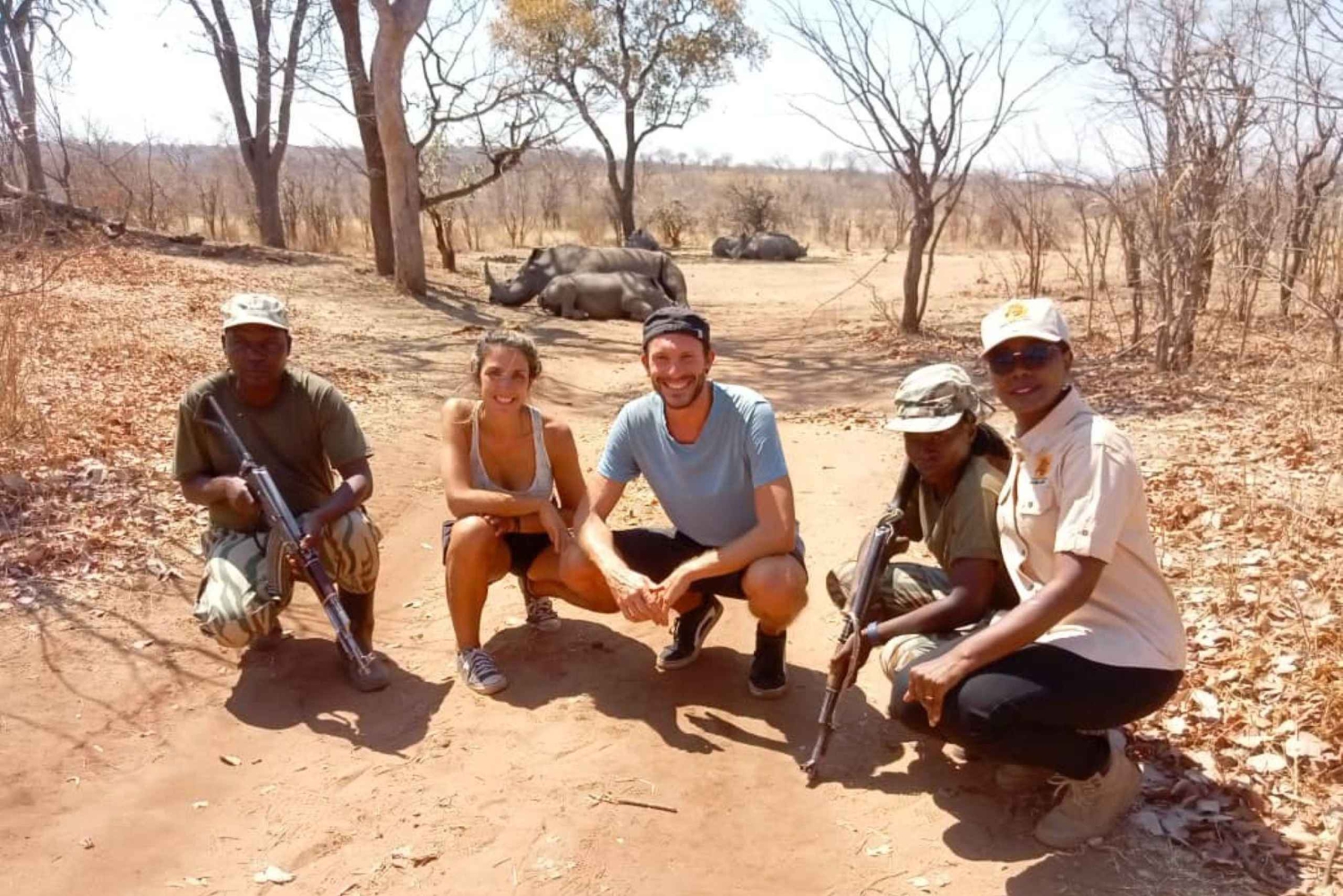 Embarque num safari emocionante para ver rinocerontes-brancos no seu habitat natural. Vai andar num veículo seguro com um guia especialista que sabe onde encontrar estes animais incríveis. Quando chegar perto de onde eles estão, desça e será recebido pelos guardas que os protegem 24 horas por dia, 7 dias por semana, eles vão dar-lhe um briefing seguro e acompanhá-lo para chegar perto destas criaturas enormes e poderosas para uma experiência inesquecível. Comece com um safari guiado para ver rinocerontes no Parque Nacional de Mosi-oa-Tunya, depois vá para uma aldeia de património local para uma imersão cultural. Experimente o local e tome uma bebida local, veja as pessoas a fazer coisas à mão e, às vezes, até participe em danças ou jogos tradicionais.Includes