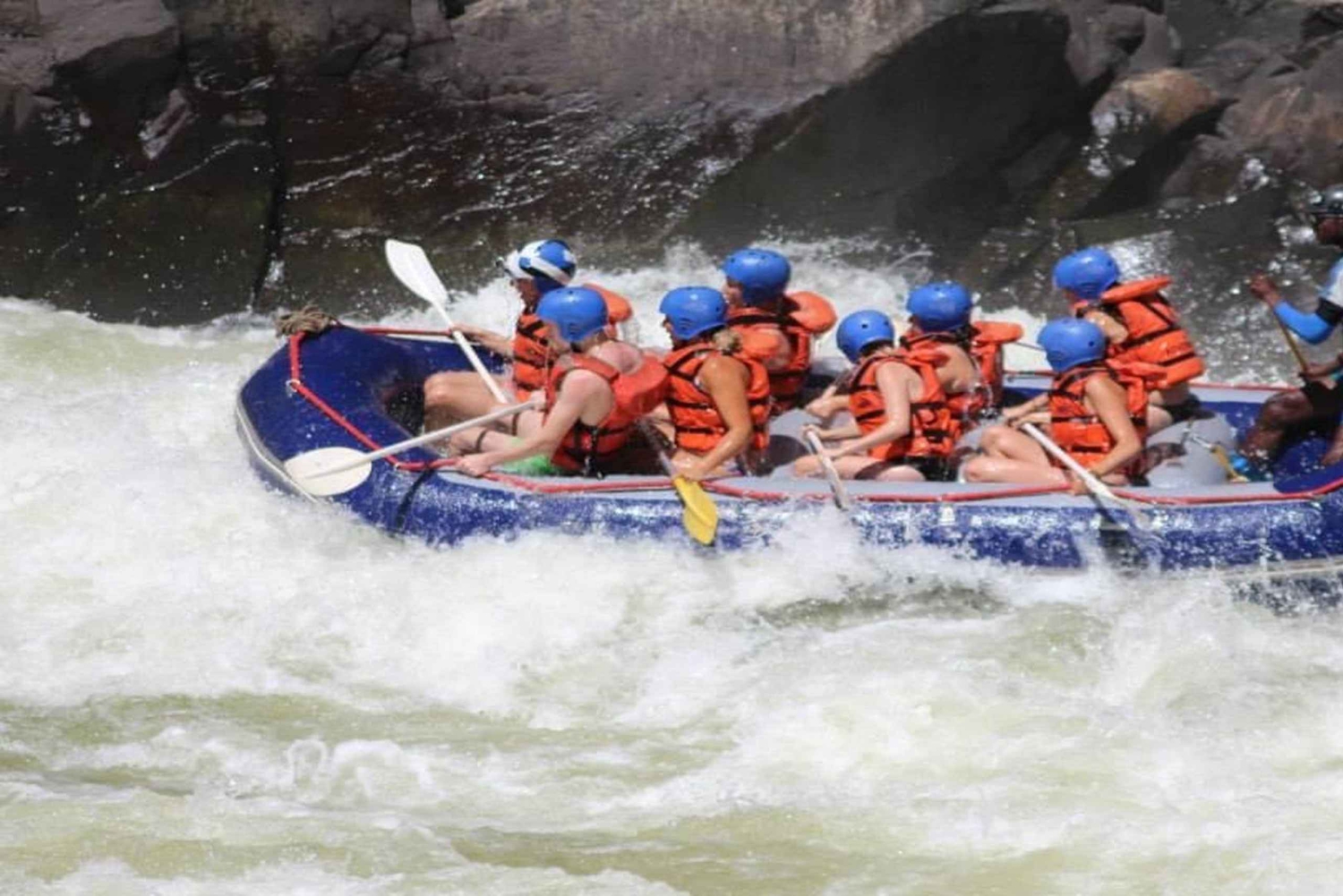 Viva a aventura definitiva em Livingstone combinando duas das atividades mais emocionantes e únicas da Zâmbia num dia repleto de ação. Este passeio combinado começa com uma emocionante viagem de rafting no rio Zambeze, seguida de um safári guiado e um safári a pé para ver rinocerontes brancos no Parque Nacional Mosi-oa-Tunya. O seu dia começa com o serviço de busca no hotel e uma curta viagem até ao ponto de partida na Garganta de Batoka. Após uma breve explicação sobre segurança e ajuste do equipamento, descerá para o desfiladeiro para começar a sua viagem de rafting por 12 a 13 quilómetros de corredeiras de grau 3 a 5, incluindo as famosas Stairway to Heaven, The Mother e Terminator. Espere por quedas, ondas e correntes poderosas que vão aumentar a adrenalina enquanto navega pelas águas selvagens com guias fluviais experientes. Após a aventura de rafting, aproveite uma breve pausa antes de partir para um relaxante safári no Parque Nacional Mosi-oa-Tunya. Mantenha a sua câmara pronta enquanto procura elefantes, girafas, antílopes e muito mais. O destaque desta experiência é a oportunidade de caminhar a pé com guardas florestais armados para rastrear rinocerontes brancos ameaçados de extinção, um encontro raro e inesquecível com a vida selvagem. Quer sejas um viciado em adrenalina ou um amante da natureza, esta combinação oferece o equilíbrio perfeito entre emoção e tranquilidade, tornando-a uma das excursões de um dia mais completas disponíveis em Livingstone.Includes